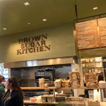We had a hard time finding the Brown Sugar Kitchen at the coliseum. After asking several employees including the information booth (who knew nothing ) we found it up by the tree house location. The line was long, but moved quickly. We both got the buttermilk fried chicken sandwich.